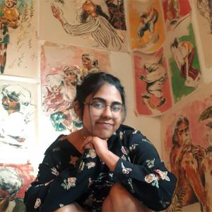 Julia Mathew is a Toronto based artist who graduated from Illustration at OCAD University. Julia first started drawing at a young age, using mediums such as phonebooks and bedroom walls to express herself artistically, driving her immigrant apartment-renting parents mad. She has since evolved and has found a passion in bringing generational immigrant communities to the forefront of her work. Mathew touches on subjects of diaspora culture, love, identity politics and cultural imposter syndrome-- exploring complex identities through unconventional and experimental mixed media.